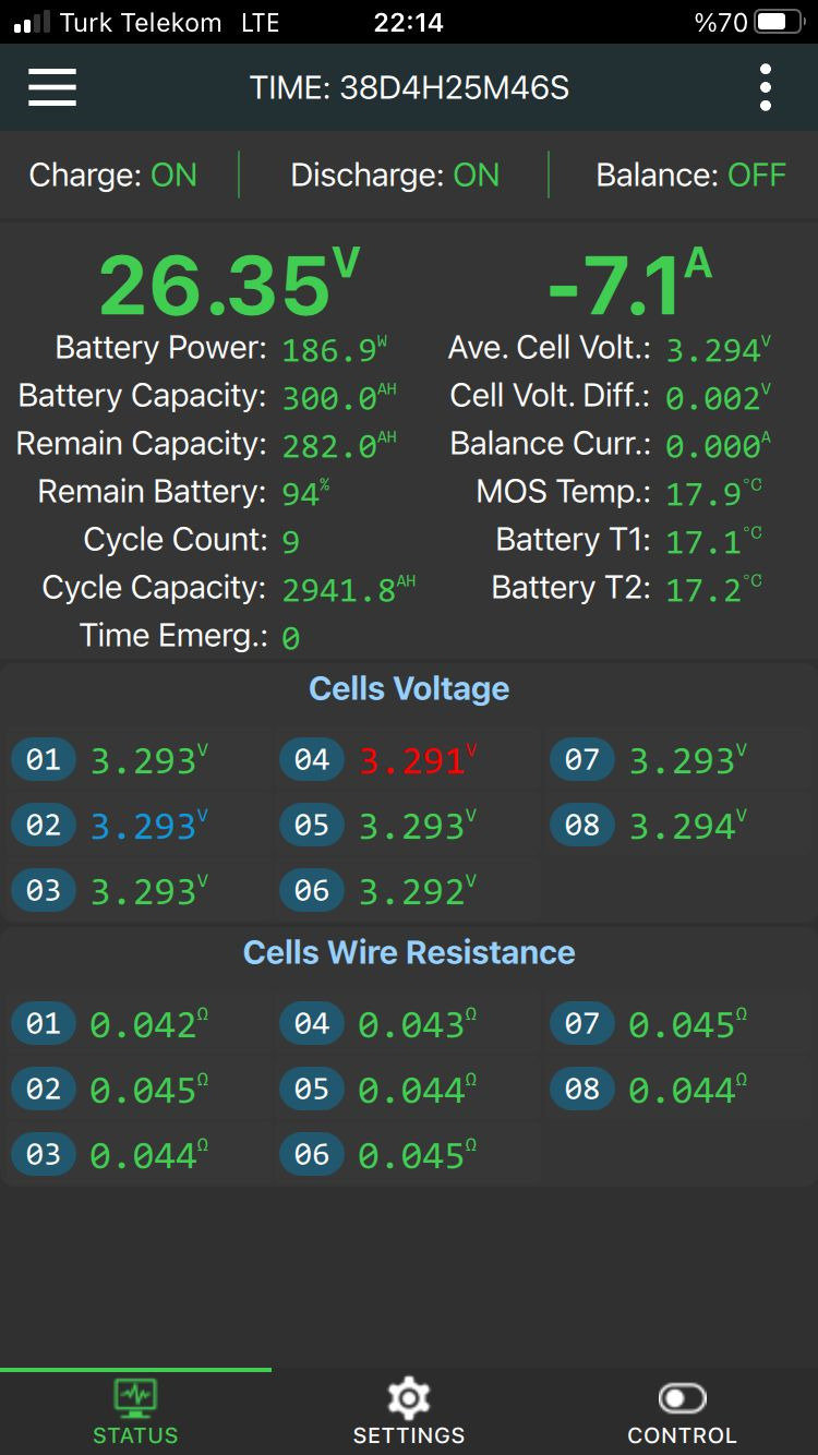 Performance tests of Lithium-based batteries can be performed with BMS balanced and smart circuits. Parameters such as currrent, voltage, capacity, temperature, etc. of the cells can be controlled from a mobile phone thanks to Bluetooth features.